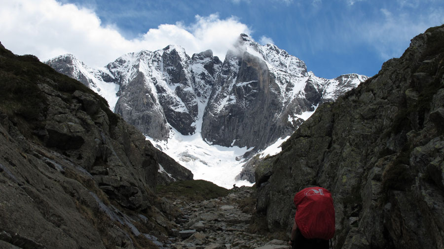 Puis un moment de grande émotion. Au détour d’une butte rocheuse le Vigmale se dévoile dans toute sa splendeur. Il a même retiré son chapeau de nuages pour nous saluer. Ce pic triangulaire est d’une grande beauté. Le refuge ne devrait plus être loin.