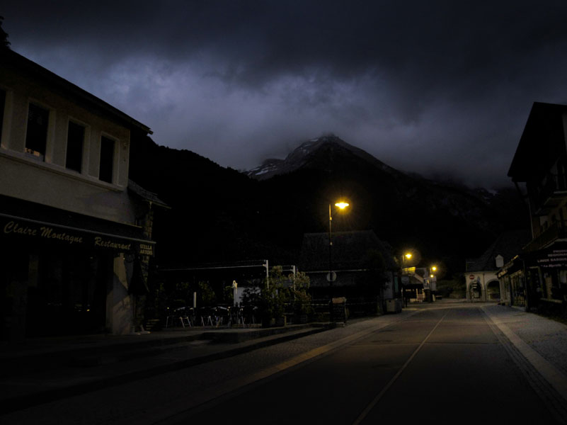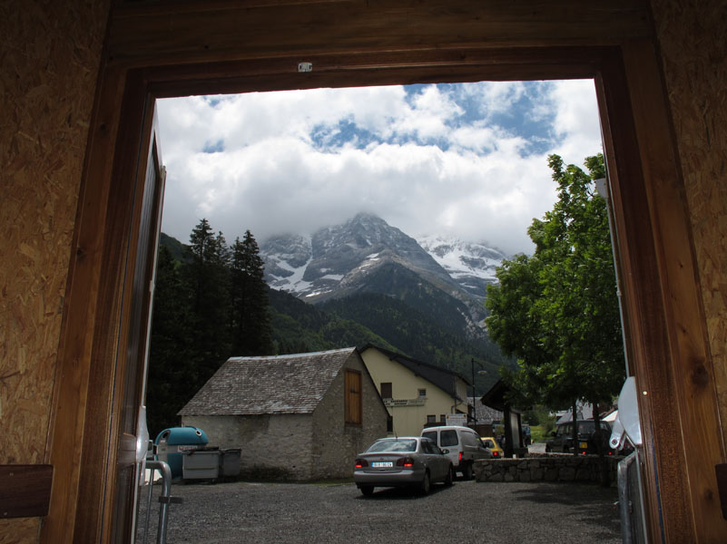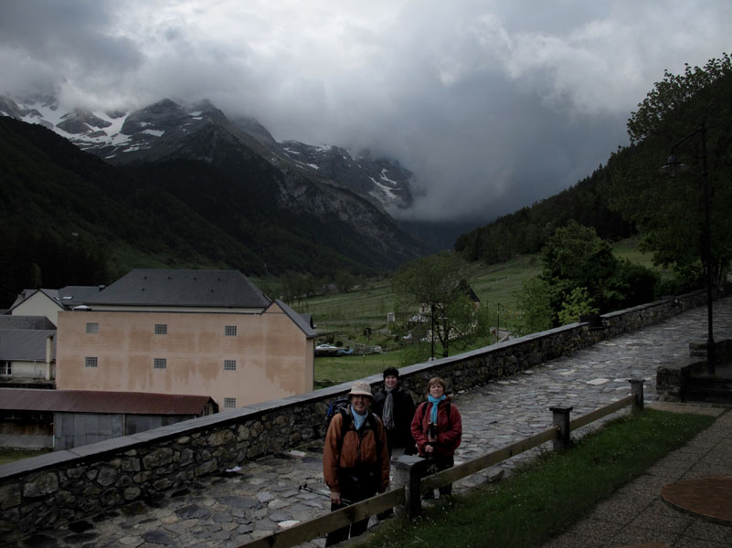 Nous arrivons au refuge pendant le ménage des chambres. Le gardien ne nous permet pas de visiter l’intérieur. Déçus, nous repartons bredouille. Nous tentons de remonter le GR10, mais la pluie et le vent on tôt fait de nous décourager. Nous retournons à l’Hôtel.