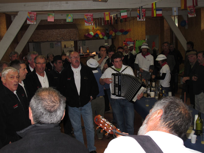 Nous décidons d’aller marcher vers l’hôtellerie du cirque, mais nous nous arrêtons finalement à une espèce de salle paroissiale, ou il y beaucoup d’activités. On nous invite à entrer et à prendre part à la fête. On nous paie un bon coup de Ricard. L’accordéon et la guitare, accompagne un groupe de chanteurs folklorique. Ce sont des chants typique de la région. Il y a beaucoup d’ambiance et c’est très agréable.
